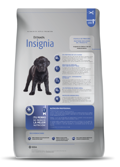 Estampa Insignia para cachorros optimiza su crecimiento y garantiza un desarrollo adecuado.